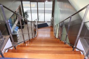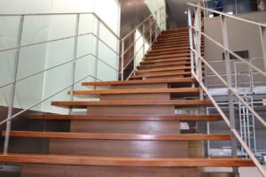 イペ材を使った階段がWelcomeなイメージを演出しています。